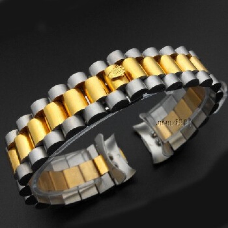 Adecuado para correas de cronometraje, adecuado para correas de acero con calendario Rolex, accesorios de reloj, tres cuentas, cadena de reloj, oro completo para hombre de 20 mm (2 piezas) * 2