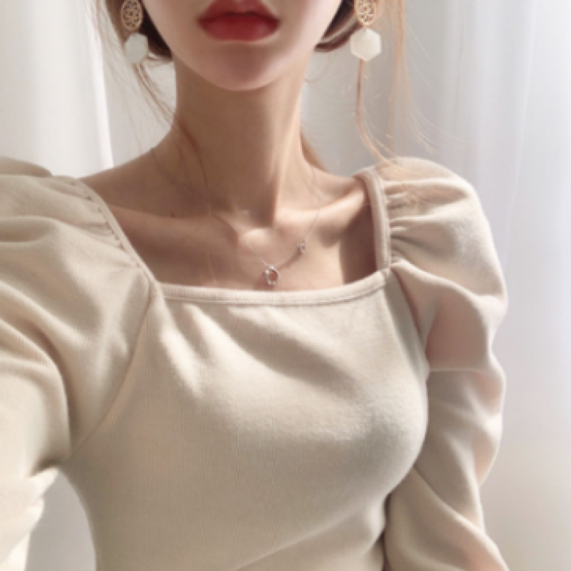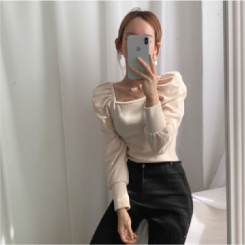 Blusa de manga de globo delgada de moda coreana para mujer baju wanita lengan panjang